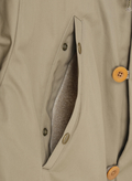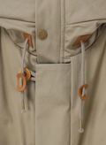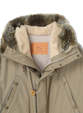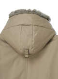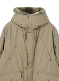 ハリのあるコットン素材を使用し、フード内側にはふんわりとしたボアをあしらい高い保温性を確保。