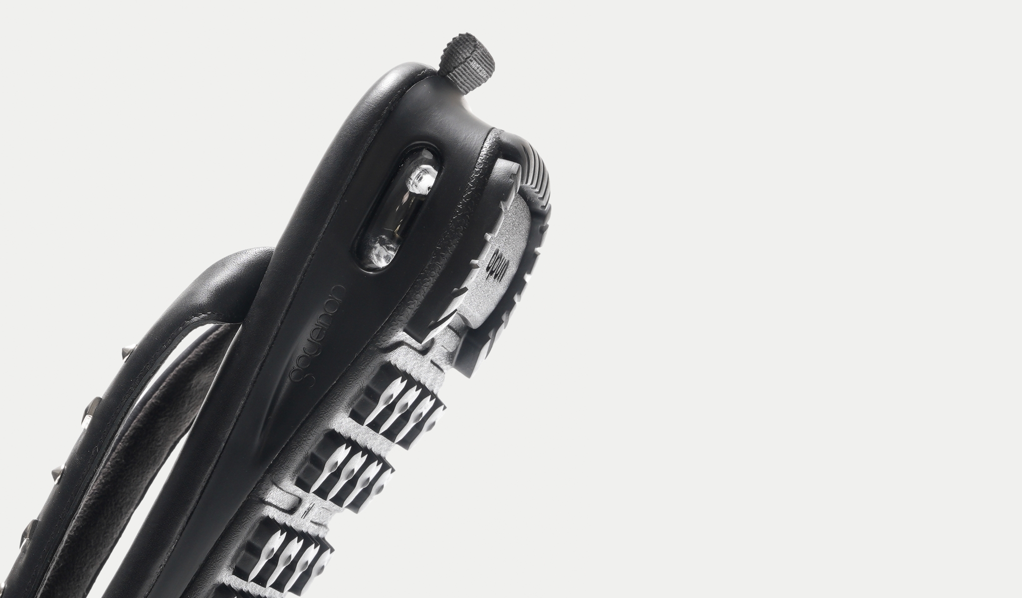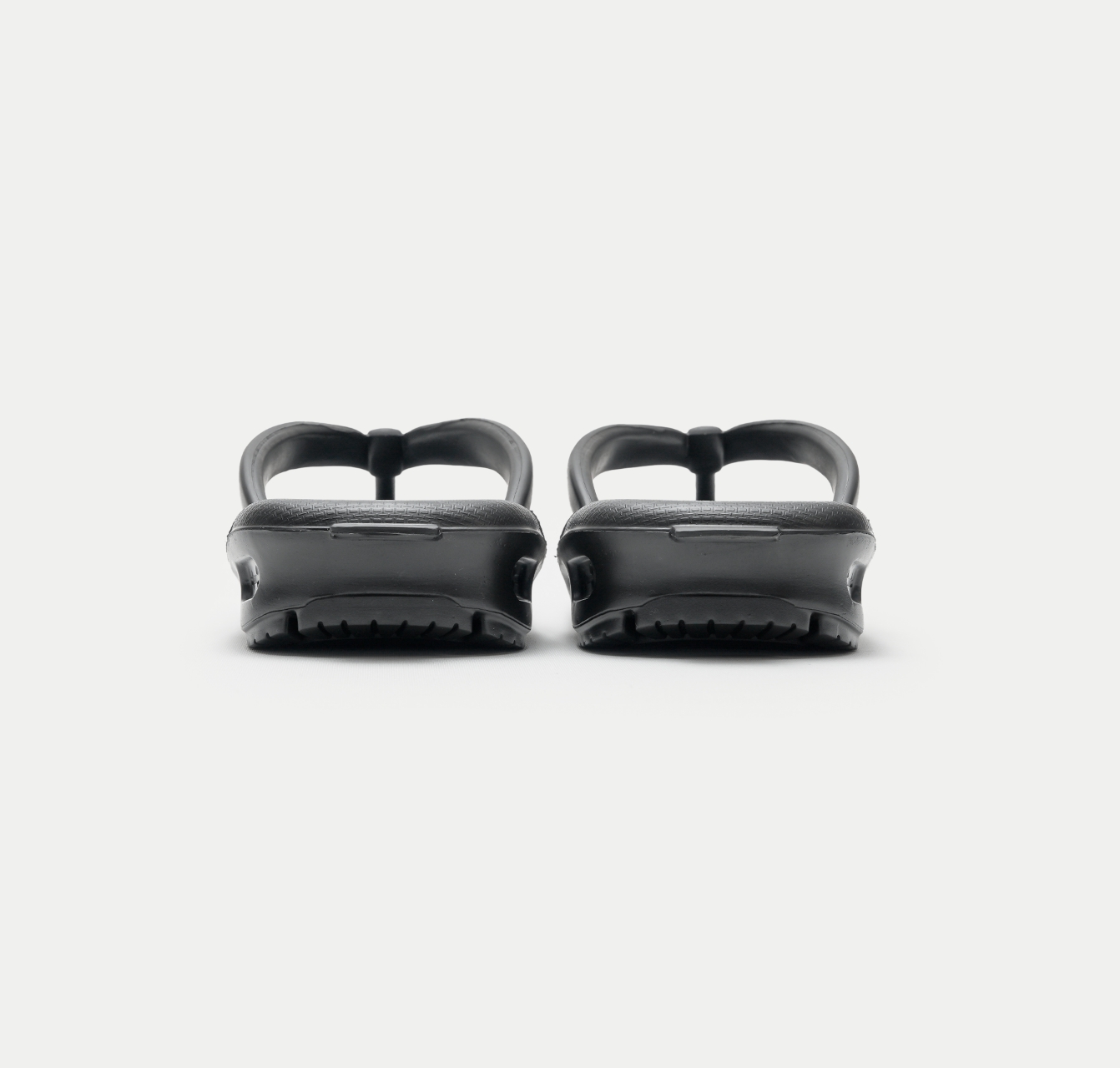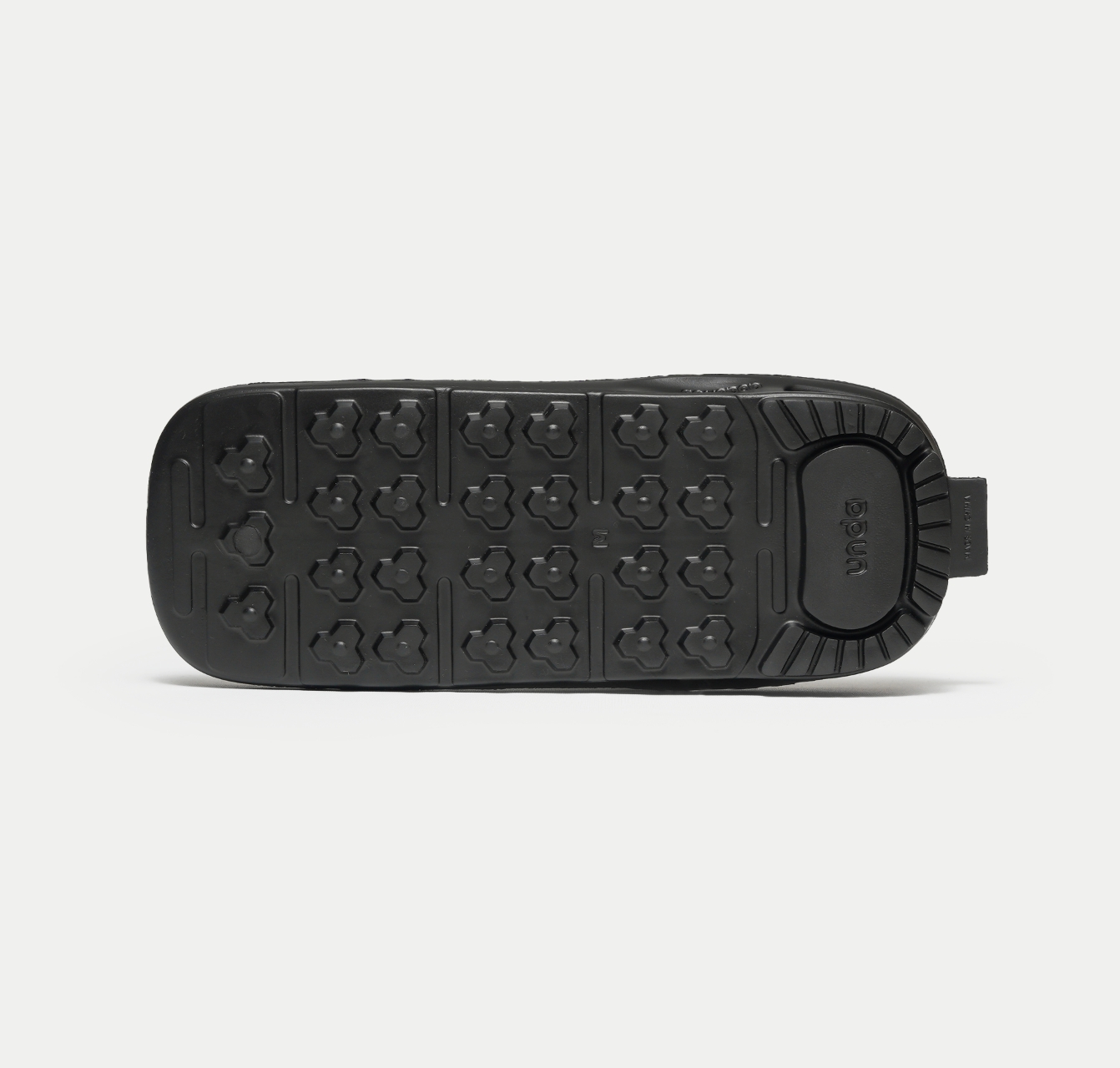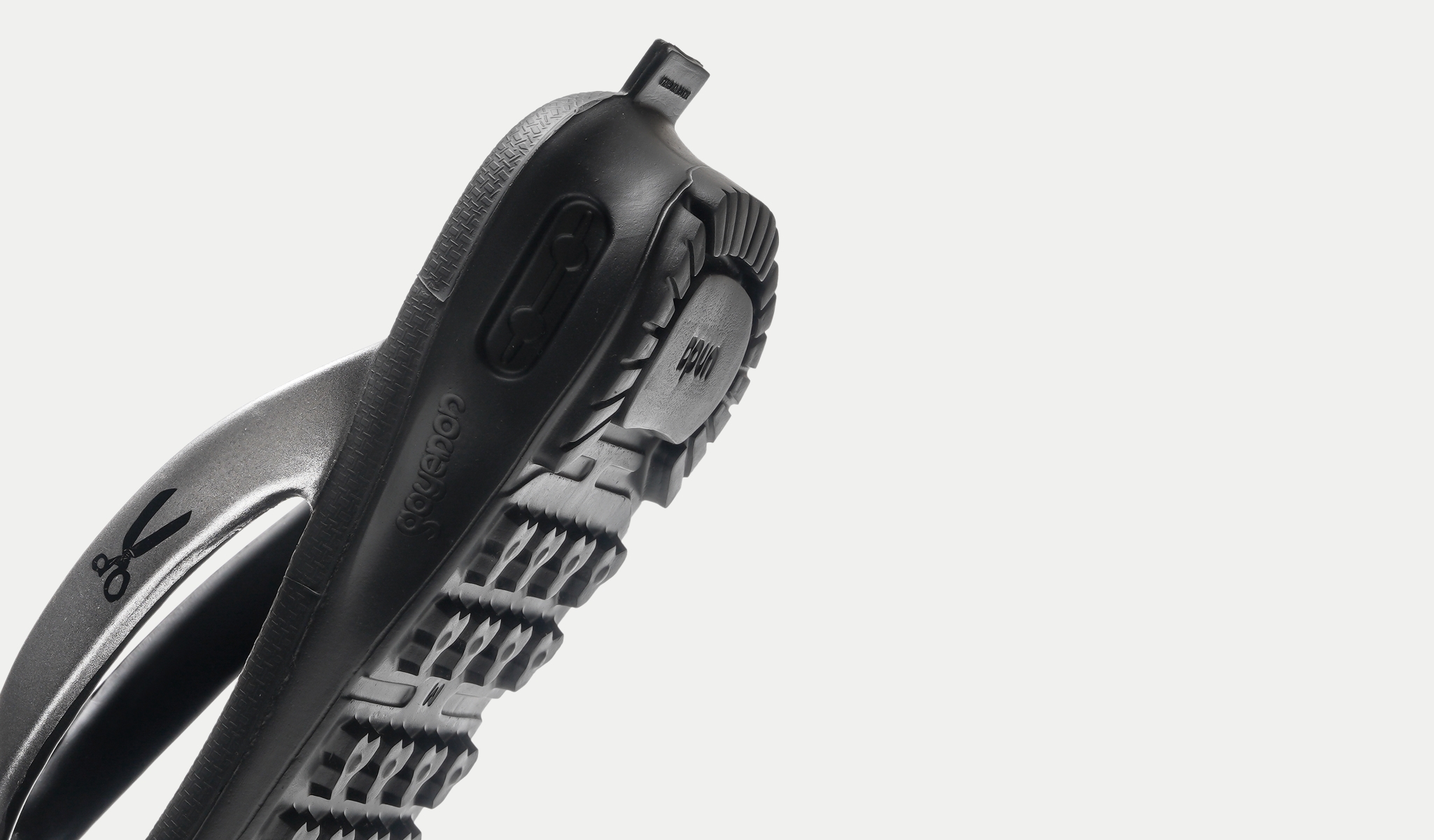雪駄にはカカト部分に、ベタガネや馬蹄と呼ばれる鉄が付いていて、これをチャラチャラと鳴らしながら歩くのが粋な履き方です。しかし、これは現代の路面などでは滑りやすく、音も大きい等の問題が多いので今回はアウトソールのデザインにその要素を落とし込みました。アウトソールデザインは、七福神の一神でもあり、財宝や福徳をもたらしてくれる毘沙門天さまの甲冑(よろいかぶと)に使われている毘沙門亀甲を採用。足元に鎧を装備するかのごとく、タフで軽快な商品を表しています。