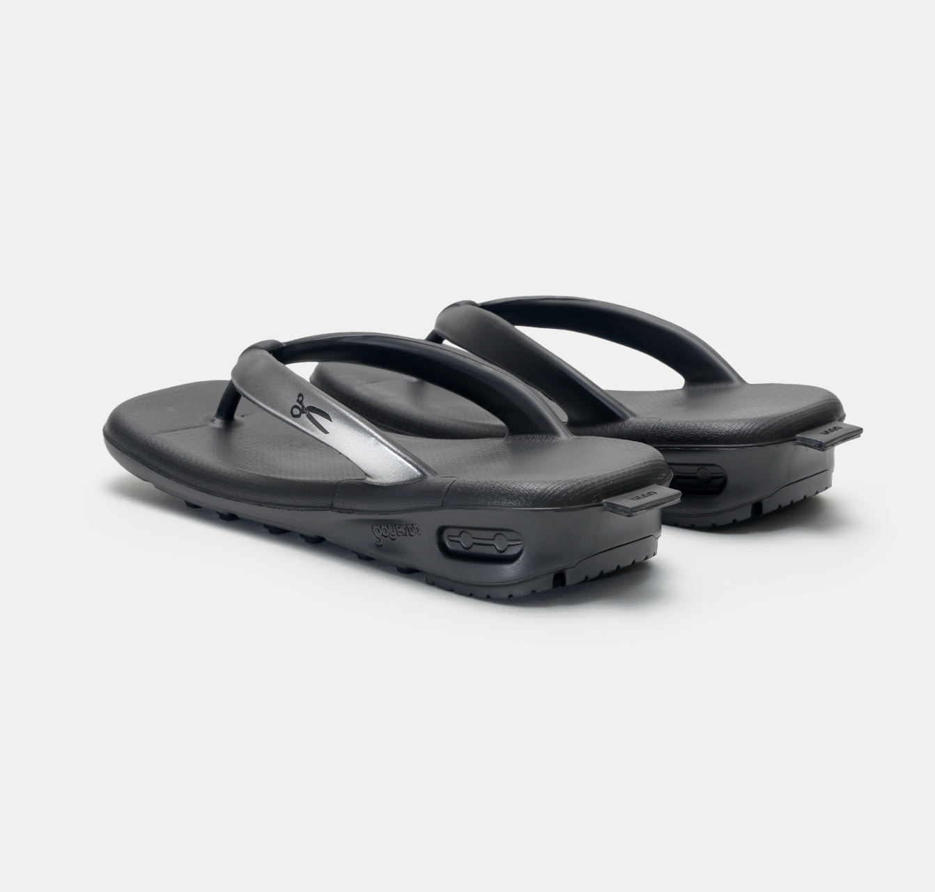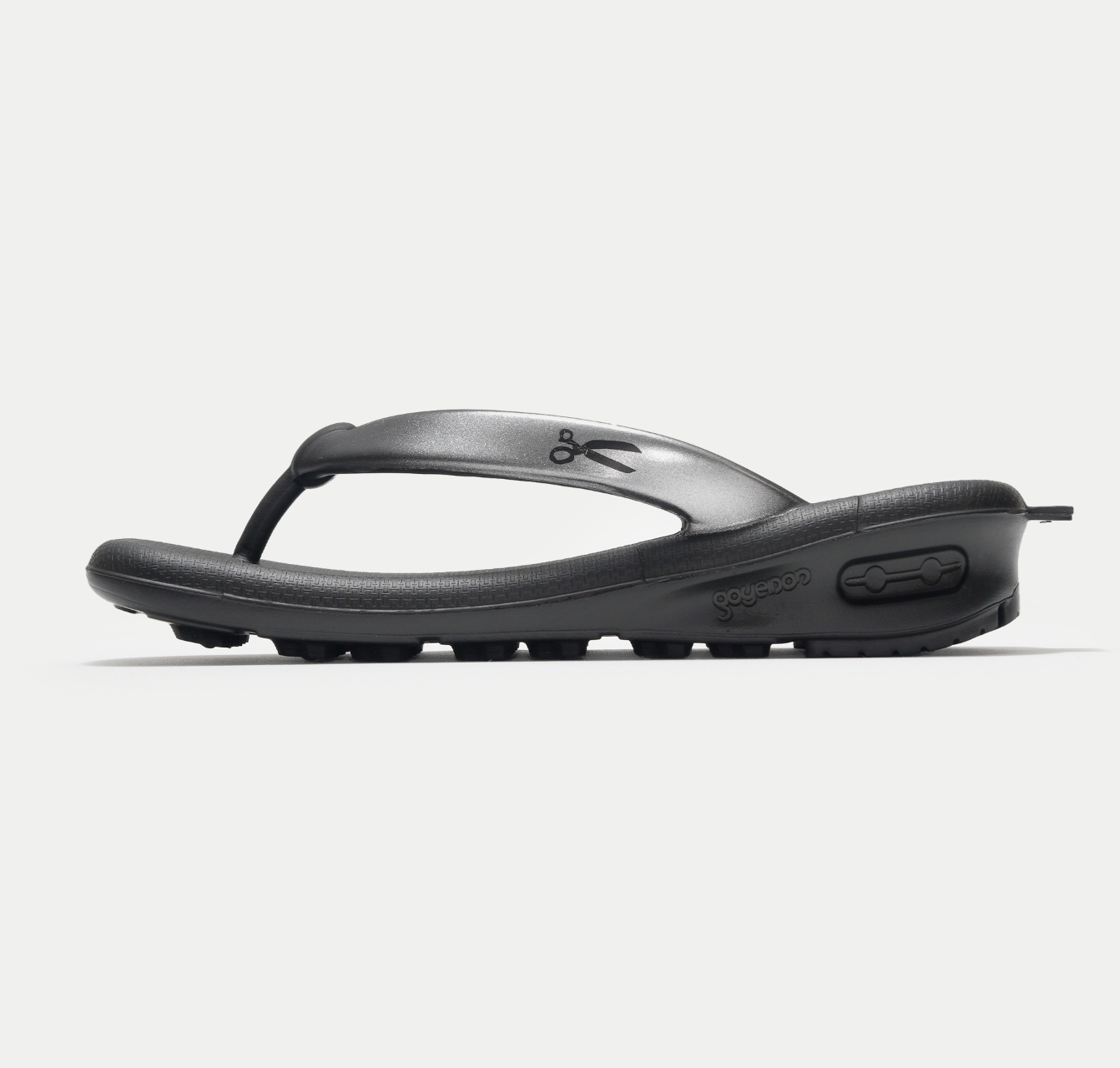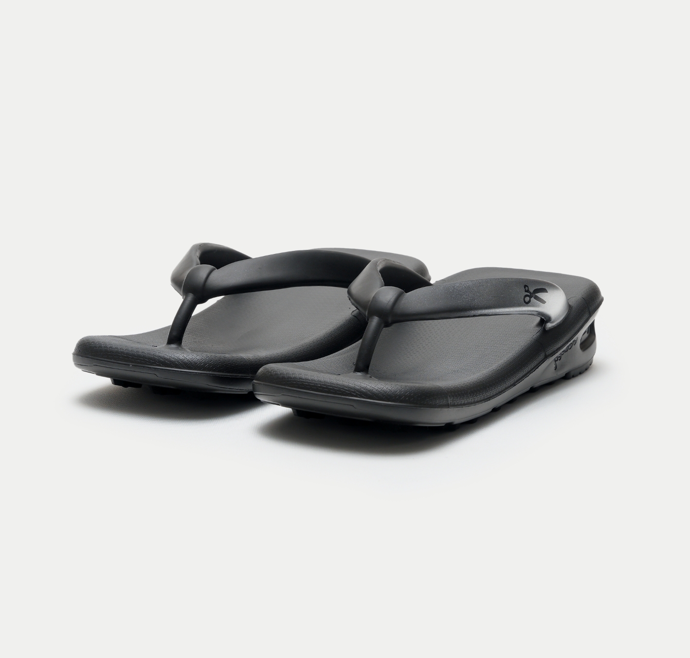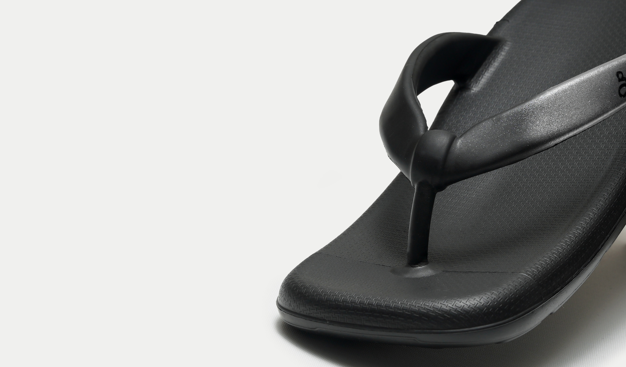 雪駄に左右はありませんので、右足でも左足でも履く事ができます。どうしても、人には足癖というものがあります。外側ばかりが減る人。逆に内側ばかりが減る人。定期的に、左右を交換して履く事で、ソールをナナメに減らすことなく平らに減らしていき、ソールの寿命を長くすることができます。雪駄はそんな日本の「もったいない文化」が産んだ日本独特のプロダクト商品なのです。その意思を注ぐべく、雪駄スニーカーでも左右対称デザインを採用し、定期的に左右の交換を可能にしました。さらに今後の商品展開として、左右対称の特性を活かし、「片足一足売り」というシューズ業界では異例の販売形態も検討しています。