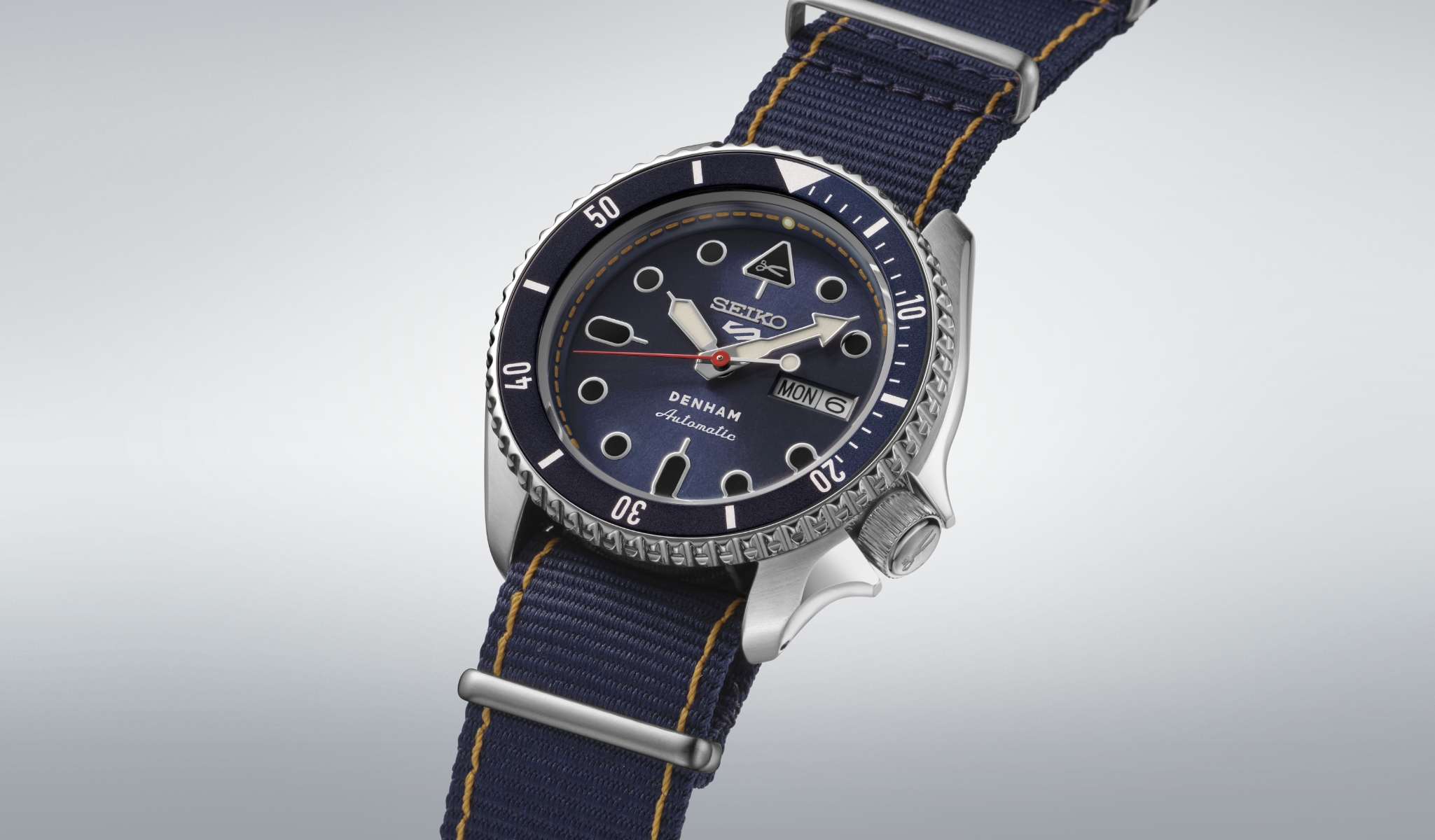 DENHAMより、セイコーウオッチ株式会社(代表取締役社長 : 内藤昭男 / 本社 : 東京都中央区)「Seiko 5 Sports」とコラボレーションした数量限定モデルを11月9日(土)より発売いたします。希望小売価格は59,400円(税込)です。全世界2,000本の数量限定です。