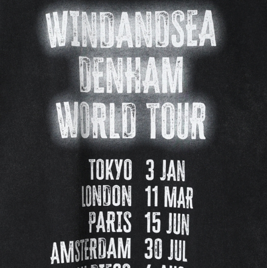 DENHAMとWIND AND SEAによる3度目となるコラボレーション。80’sハードロック、パンクカルチャーをベースに、アイコニックなグラフィックロゴやユーズド感、ACIDブリーチなどの手法で表現したコレクションとなっています。まっさらなホワイトに、フェイドしたブラックとレッドの差し色を軸としたカラーパレットで、継続して展開するシグネチャーロゴTEEをはじめ、ツアーTEE、ピック型キーホルダーなどロックテイストで構成した全16アイテムを展開します。