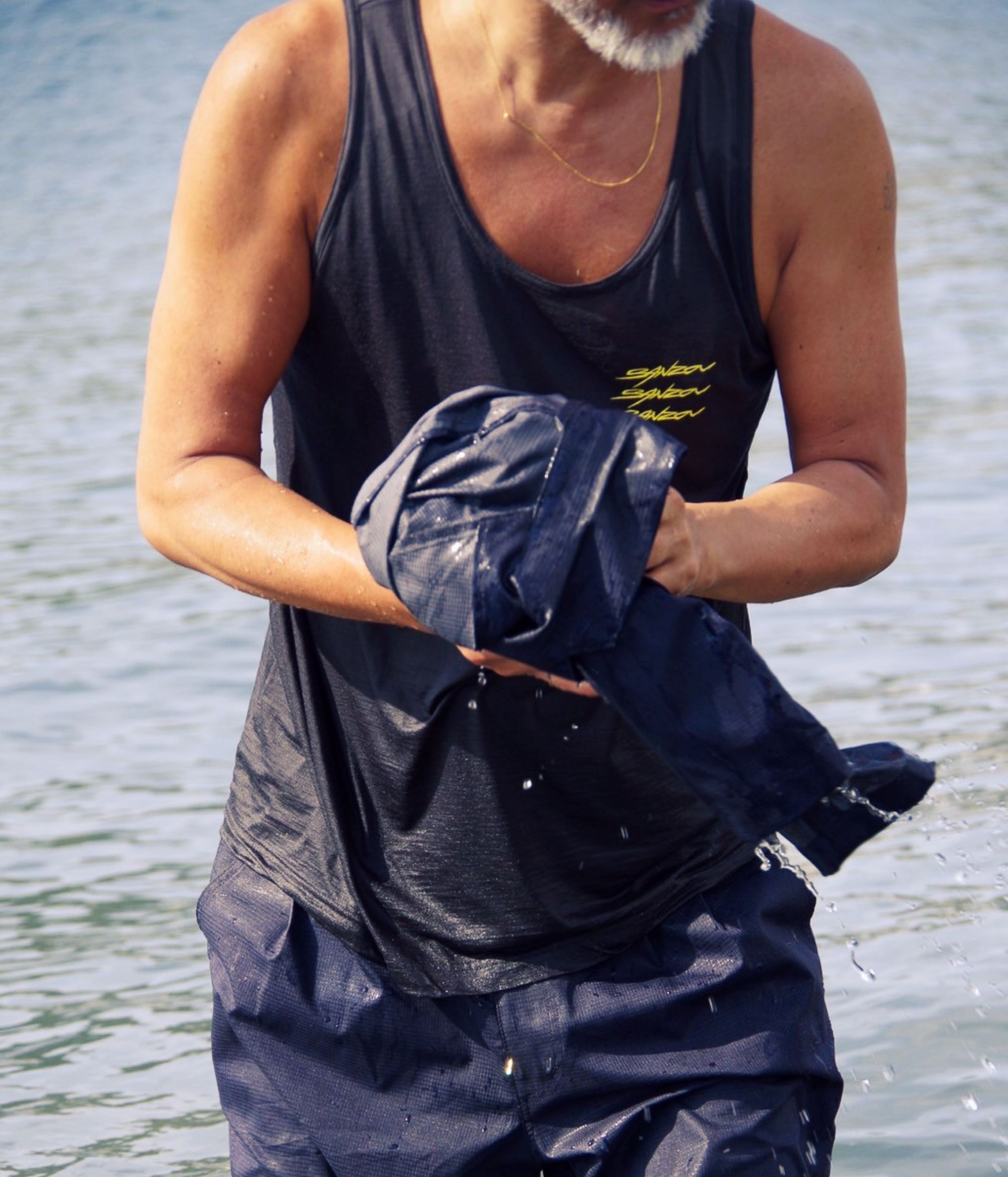 そんなシーンを想定し、DENHAM x SANZOU TOKYOのコラボアイテムが誕生しました。カレーを食べて汗をかいても、嫌な臭いが気にならない特別な生地を採用したカットソー。テクニカルなデニムプリントのセットアップは軽量で通気性が良く、アウトドアでも快適に。アクティブなシーンから都市の洗練されたレストランまで馴染むシルエットとディテールを採用しています。タフに使えるキャンバストートにクリア素材のラゲッジタグ、デイリー使いのできるエコバッグやバケットハットなど小物も展開いたします。