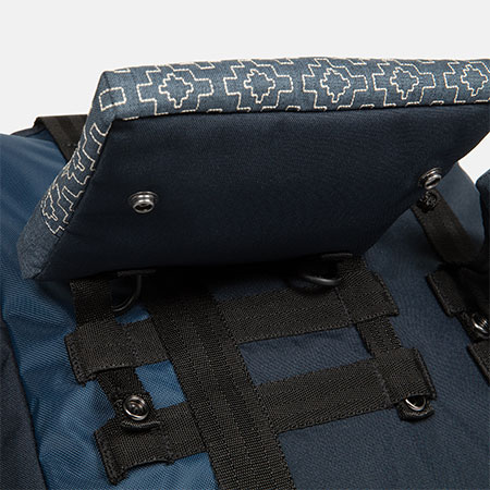 ・INDIGO BORO : 1,000年にわたる日本の藍の歴史をバリスティックナイロンで再現。 ・SASHIKO STITCH : ダルマ刺し子を施した生地で構成。 ・WORN - IN NEVER WORN - OUT : インディゴのコントラストとパネルアレンジで、ナチュラルエイジドデニムのパッチ / リペア美学を表現。 ・AUTHENTIC DENIM : 2トーンのナイロン織物、ファブリックウェイト、コーティング表面がVIRGIN DENIM生地に見られる様々なテクスチャーを反映。 ・EAST MEETS WEST : 東洋をイメージした手結びの結び目は、ポジティブな文化の象徴として幸福を表現。 ・MODERN DESIGN : 4-in-1現代の通勤・通学のためにモジュラーデタッチャブルシステムを採用。デニムの5ポケットでは物足りない方達へ。