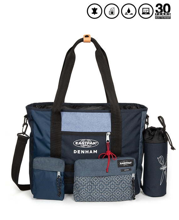 今回、EASTPAKのアイコンであるバックパックとトートバッグのシルエットにDENHAMのデザインコンセプトの一つである“EAST MEETS WEST”東洋と西洋が融合したデザイン美学を取り入れたコラボレーションコレクションを発売。伝統的な刺し子とインディゴブルーのパネルアレンジ、そしてモダンで機能的かつ耐久性のあるEASTPAKラゲッジが融合。DENHAM x EASTPAKコレクションは、デニムの5ポケットでは物足りない方達へ、また現代においての日常使いの最適解をコンセプトにデザイン。このコラボレーションコレクションはモジュール構造の2つのアイテムで構成され、ワールドワイドで9/20(火)に発売します。