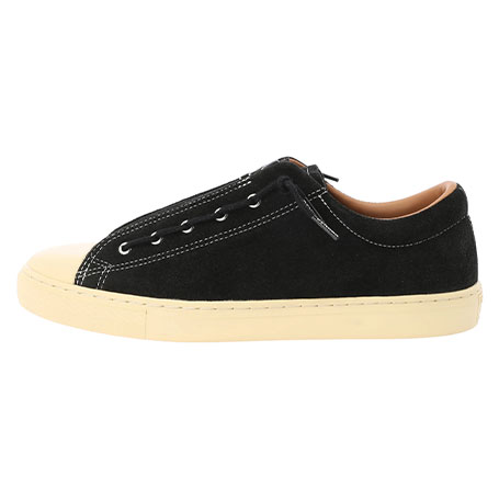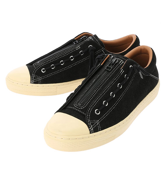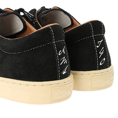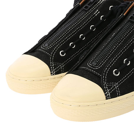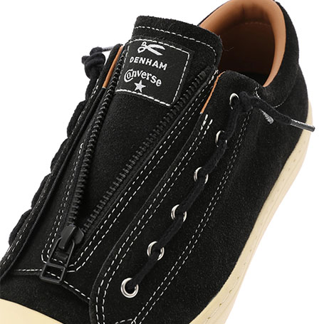 第4弾となるCONVERSEとのコラボレーション。ドレッシーなカップソールを採用したオールスター、ALL STAR COUPEにて発売。ヴィンテージシューズのように、あえて黄ばみをかけたソールに、シックなブラックスエードのボディデザイン、そしてブラックのセンタージッパーを配し、着脱イージーな仕様にしたアイテム。シュータンにはダブルネームのタグや、インソールのオリジナルグラフィックなどシンプルなデザインの中にこだわりの溢れるシューズとなっています。また、このジッパータンは取り外しが可能で、シンプルなシュータンのみのデザインでも履くことのできる2way仕様となっています。