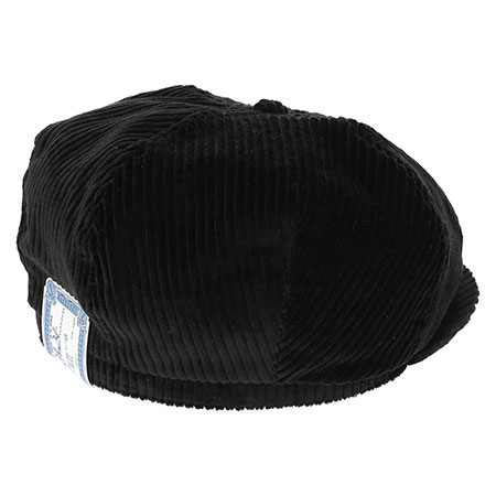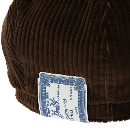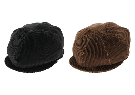 コーデュロイのキャスケット。クラウンの前後で切り替えのあるクレイジーパターンのハンチング。前から見た時は程よい膨らみのあるハンチングシルエット。後ろから見た時は深さのあるキャスケットシルエット。コットン100%の太畝コール生地。