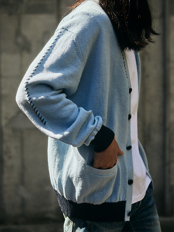 TOPS - STITCH WASHI CARDIGAN BLUE