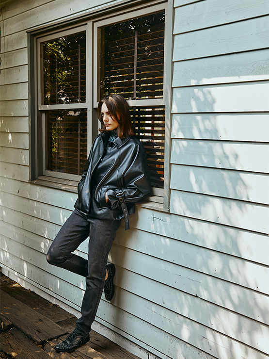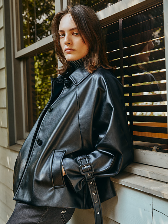 DOLMAN SLEEVE FAUX LEATHER JACKET