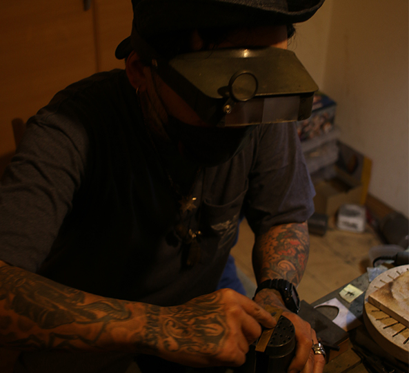 バイク好きから整備や溶接などの技術を身につけ、モノづくりを始める。2015年にGRAVER METAL WORKSを設立し、シルバーアクセサリーの制作を始める。そんな中インディアンジュエリーに魅了され、毎年サウスダコタ州のスー族の下に行き、インディアンの伝統を学び、インディアンジュエリーの制作を始める。