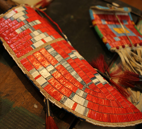 スー族の伝統工芸品であるクイルワーク。交友のあるインディアンの奥さんに作ってもらったものだそう。