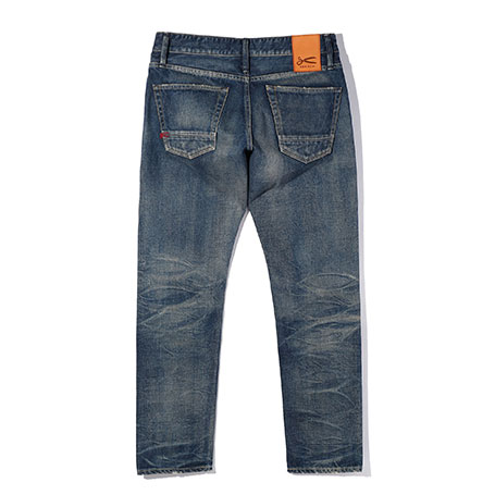 岡山で力織機を使用し13.75OZの赤耳に仕上げ、RIDGEフィットにアメリカ西部LAのドライな砂漠を意識した洗い加工を入れております。