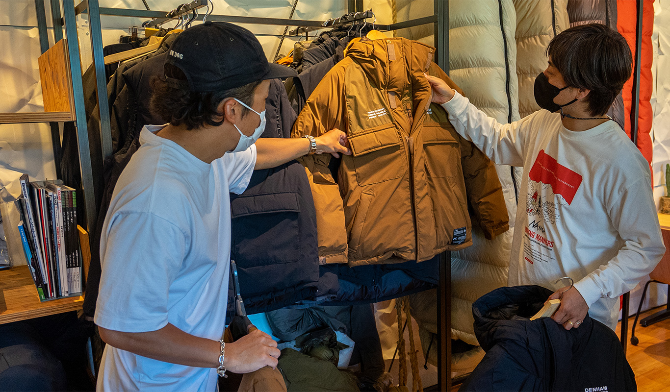 ダンジャケットってDENHAMでは、秋冬だとデニムの次くらいに売上が大きいので、いくつかの東京ブランドとコラボレーションを実現させてきました。それで次のブランドを探していて、とにかく軽くて柔らかい、それでダウンもすごくいいものを使ってるっていうところがないかなって思ってたら、ステファンを通じて繋がった。小川(デンハム・ジャパンMD兼 コラボ担当者)も元々釣りで知っていたし、着ていたので。完璧な出会いでした。