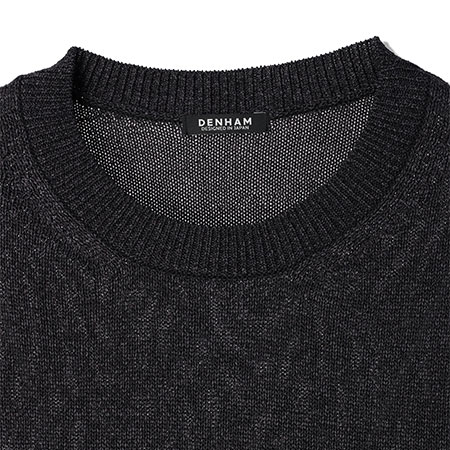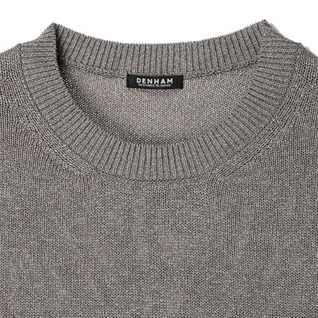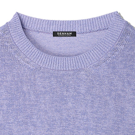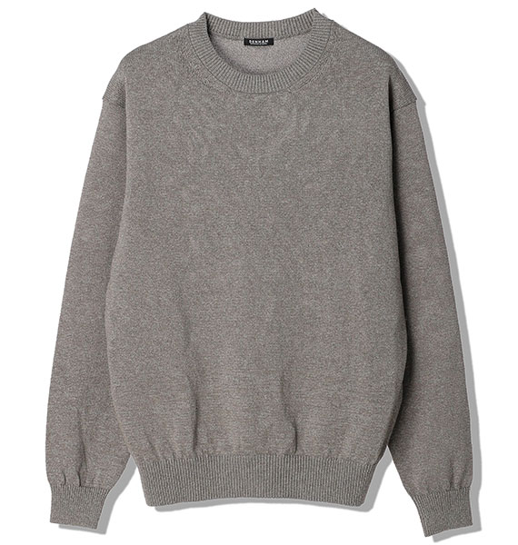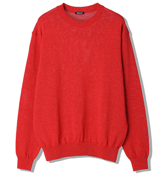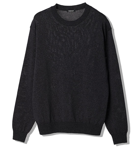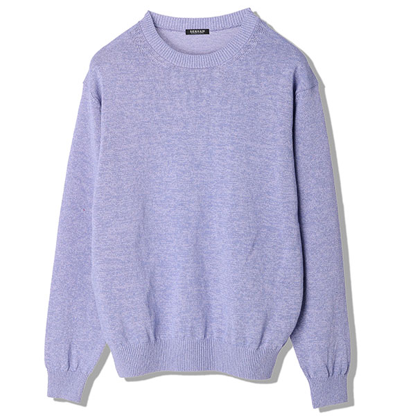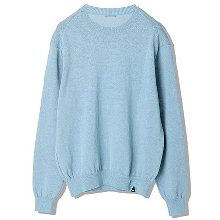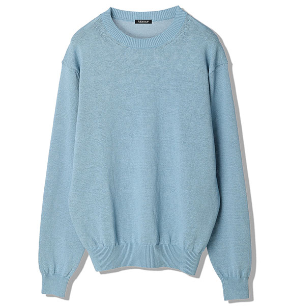 クルーネックの和紙ニット。素材はコットンと和紙、レーヨンの糸で編み立てており、ジャケットのインナーなどでも着られる上品なデザインとなっております。和紙は熱がこもりにくいため、高温多湿な日本の気候に適しています。程よく身幅をとったサイジングに加え、糸の種類の撚りや編地を計算することにより、風が抜けて心地良い清涼感のある仕上がりになっております。