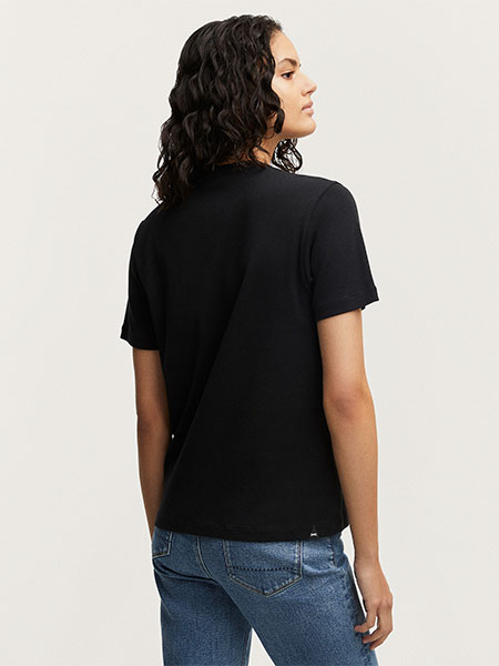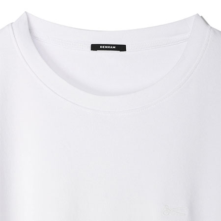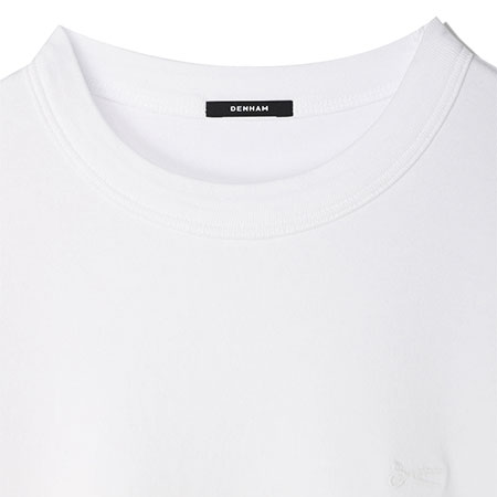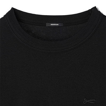 胸元にあしらわれたDENHAMのシザーズマークがさりげないワンポイントになるTシャツ。曲線のクルーネックで優しい印象を演出します。ブラックのカラーがコーディネートを引き締めてくれるのも魅力。合わせるボトムスを選ばずに幅広く活躍してくれるアイテムです。