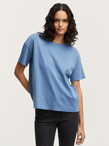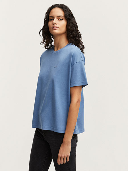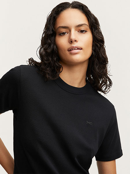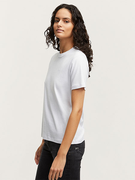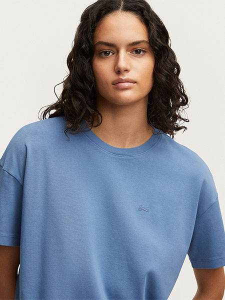 胸元のシザーズマークがさりげないアクセントになるTシャツ。丸みを帯びたクルーネックで優しい印象を漂わせます。1枚で着用するのはもちろん、シャツやカーディガンと合わせたスタイリングもおすすめ。シンプルなルックスで着まわしやすく、様々なコーディネートを楽しめるアイテムです。