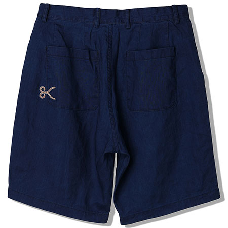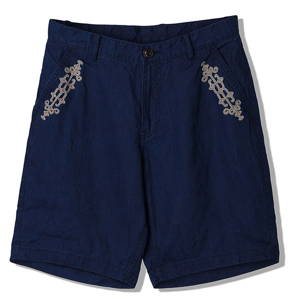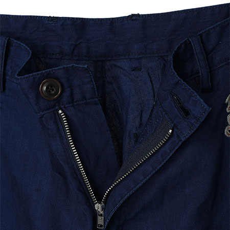 a IN Uのリネンショーツ。フロントのポケットに刺繍を施し、バックポケットにもa IN Uのシザースを施しております。シャツと同素材のためセットアップが可能です。生地の染色は、インディゴ染めで国内の染工場で染色した後染めインディゴ。着用、洗いを繰り返すことで色落ちによるインディゴ染め特有の表情の変化が楽しめます。使用方法、洗い方法、使用期間によりそれぞれ違った変化が期待でき長年使用することにより、独特な味や深みも期待できる素材です。