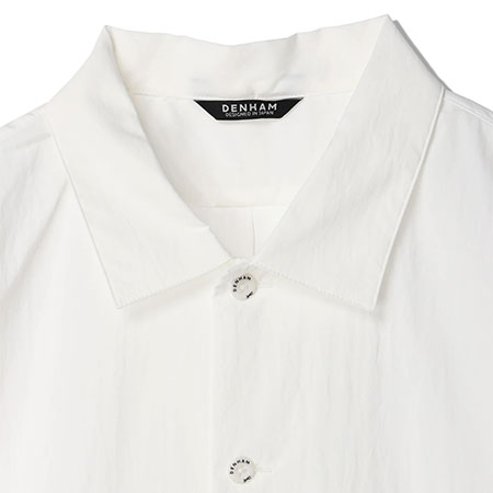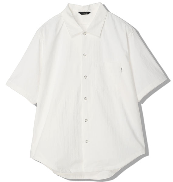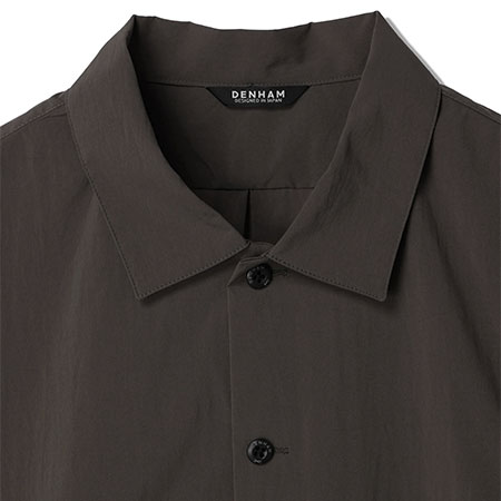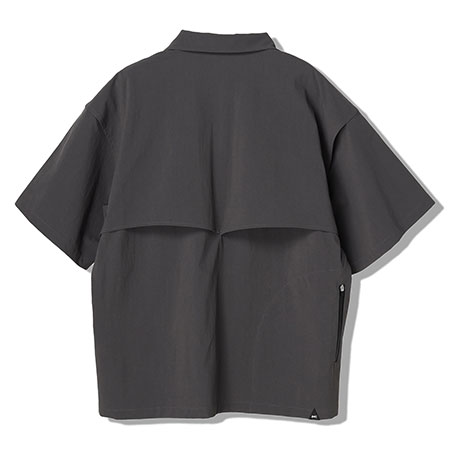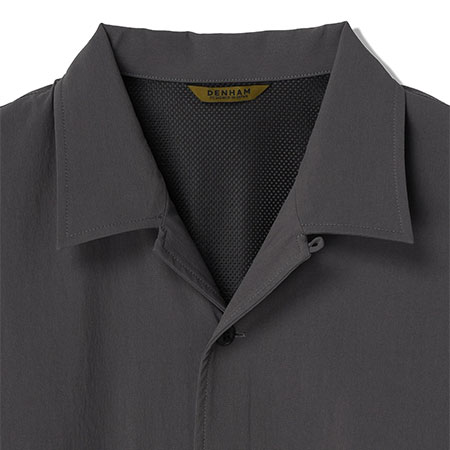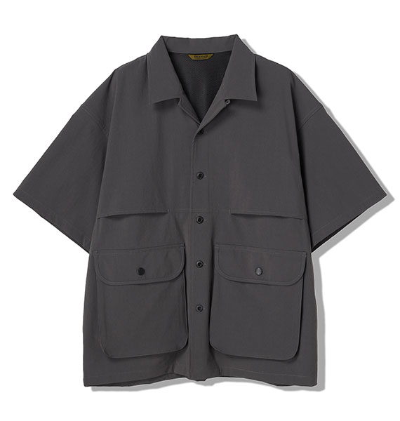 テクニカルな生地を使用したミリタリーハンティングシャツ。夏のムレを解消するため、ベンチレーションを前後に搭載。背面の右下にはハンティングジャケットの名残のポケット付き。タテ・ヨコ共にポリウレタン糸を使用し、伸縮性に優れた素材を使用。やや薄手でコシがあり、ナイロン特有のさらっとした肌ざわりが特徴。撥水加工を施した機能性も備わる素材、接触冷感、お手入れ楽チンイージーケアでデイリーアイテムとしてこの時期かなり頼れるアイテムです。