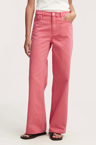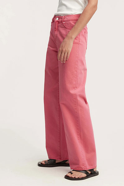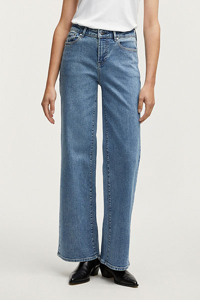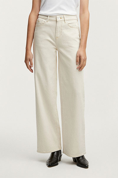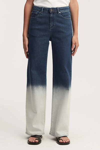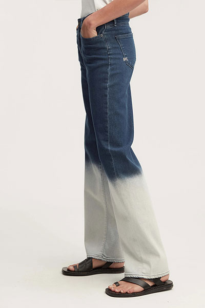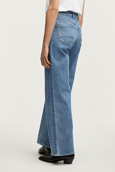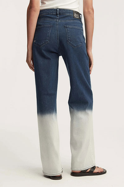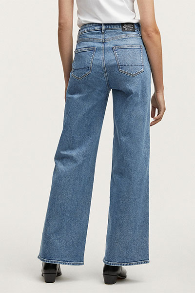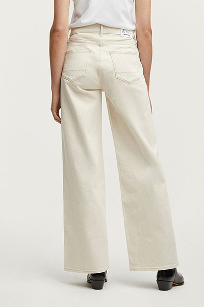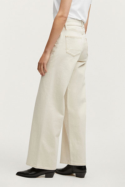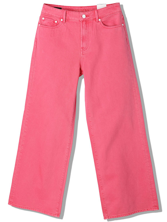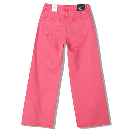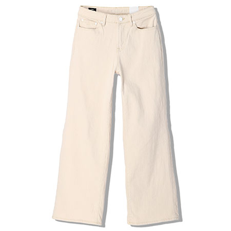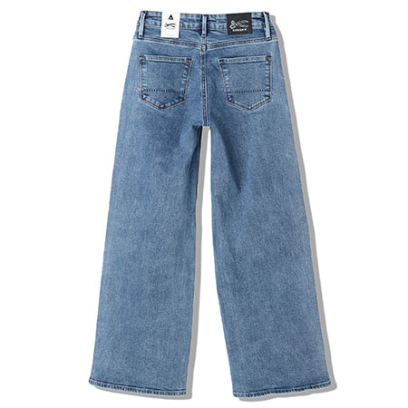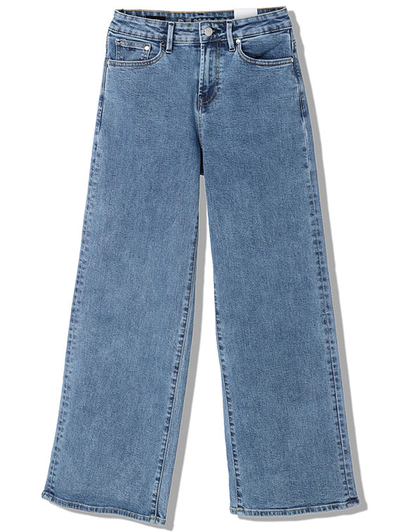 ゆとりのある穿き心地に仕上げたワイドタイプのジーンズ。ストレートタイプは縦長感を強調し、シルエットもすっきりとした印象に見せてくれます。すらりとした脚長効果が得られるのも魅力のひとつ。バックにはレザーパッチとロゴ刺しゅうのワンポイントが施されています。オーバーシルエットのトップスを合わせたルージーなスタイリングもおすすめ。