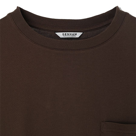 七角形の胸ポケットが特徴的なTシャツ。シザーのワンポイント刺しゅうもアクセントをプラス。コーディネートに品良く馴染む落ち着いた色合いのブラウン。ベーシックなクルーネックで、どんなアイテムともバランスよくスタイリングすることができます。袖はリブで切り替え、プッシュアップしたラフなスタイリングも楽しめます。綿100%素材の優しい肌触りで着心地も快適です。