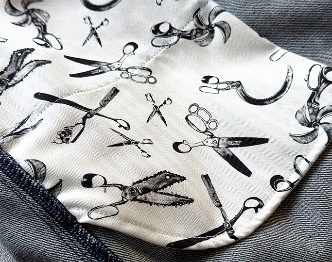 糊が落ちた部分は、インディゴの色が抜けやすくなり、糊が残った部分はシワがよらずインディゴが落ちにくい、という仕組み。