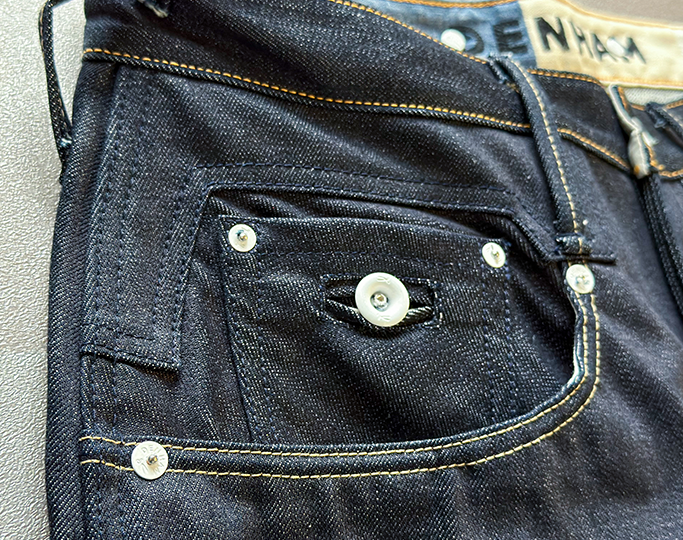 そして、育成期間を経たリジッドデニムを最初の洗い「ファーストウォッシュ」でキレイに糊とアタリ部分のインディゴを洗い落とし、