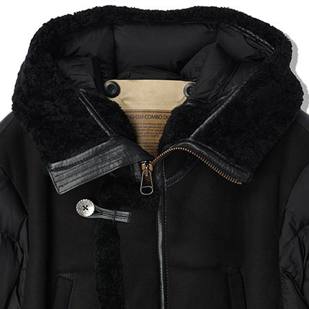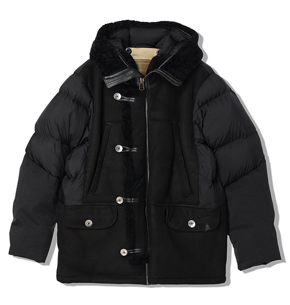 麻布台ヒルズのオープニング限定商品としてTen cとの別注アイテムを発売。 DENHAMのブランドコンセプトである”THE TRUTH IS IN THE DETAILS”を別注コンセプトに完成されたムートンジャケット。ベースとしたTen c B7 SHEEPSKIN PARKAを大きく変更はせず、シルバー925で製作したボタン・内側に別注仕様のスペシャルタグがポイント。前身・フード縁は厚手の羊毛皮を採用しながら、軽さと動きやすさを出すため袖と後身は軽量のナイロン素材で切り替え、軽量ナイロン素材の切り替え部分はヨーロピアングースダウンを贅沢に封入し、高い保温性をキープ。完全ミリタリースペックのジャケットでありながら、Ten cのクラフトマンシップによりラグジュアリーな雰囲気も醸し出す仕上がりとなっている。