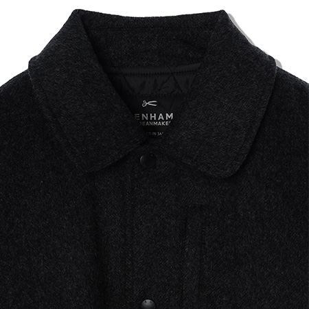 超撥水を施したウール素材のダッフルコート。上質なウールを使用した2重織素材。膨らみと柔らかさを生かしたビーバー仕上げを施しており、上品な光沢感が際立つ風合いに仕上げています。フロント部品には、木製のトグルボタンを採用し、袖口やポケットは補強とデザインを兼ねてレザーを用いています。