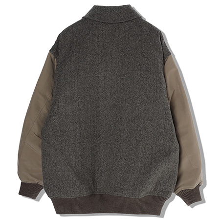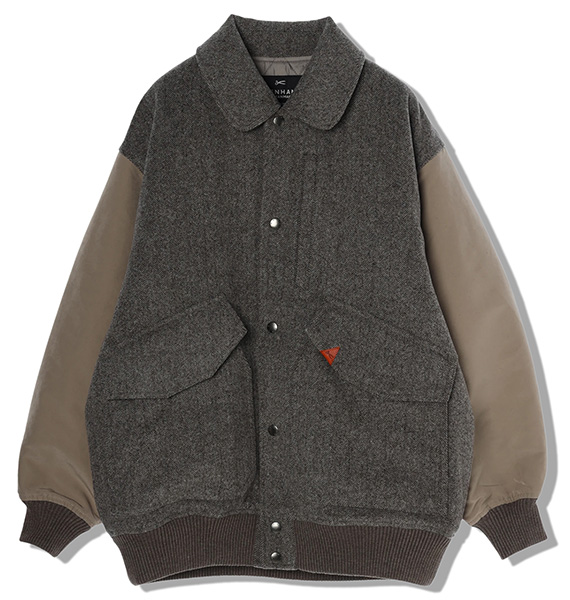 クラシックな雰囲気漂うヘリンボーンを使用したフライトジャケット。袖をピーチ素材のナイロンで切り替えたデザインでモダンな印象を与えてくれます。裏は光電子中綿キルトになっており、保温性にも優れ、寒い季節もあたたかく着用することができます。フロントには複数ポケットを備えた機能性も魅力のひとつ。ポケットはフラップポケットだけでなく、使いやすいようにサイドにも追加している。落ち着いたカラーで品良くスタイリング出来るアイテムです。