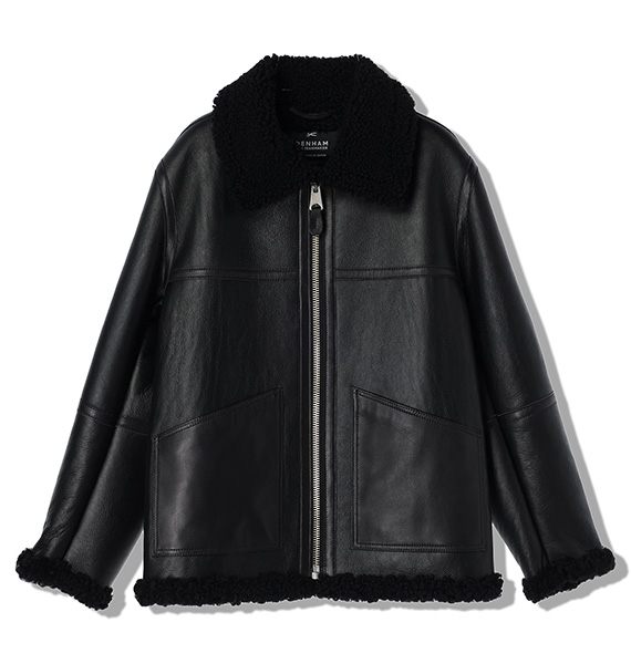 高級品質のメリノ種羊の天然ムートンを柔軟になめし、表と毛(ウール)部分の色を同色で染めた後、表面を表革風にするために顔料でコーティングしたムートン。ウールの長さも、機能面と着用のしやすさを考慮して1cmに調整。革質は柔軟でウールの密度も詰まっていて保温性、快適性のある着心地を実現します。重量がやや重いのはウールの密度がしっかりとあることの証明です。デニムと合わせた大人な着こなしがおすすめです。