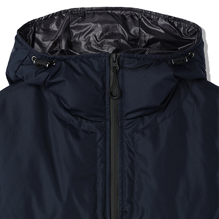 Composition: 表地:ポリエステル100% 裏地:ポリエステル% 充填物:本体:ダウン90% フェザー10% その他:ポリエステル100%