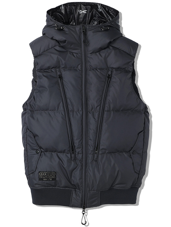 寒い季節に最適なダウンベスト。デザインには段差と切替えを施し、おしゃれかつ立体的な印象に仕上げました。大きなジップで着脱がスムーズで、立体的なフードは風や寒さからしっかり守ってくれます。ポケットも工夫し、2つの空間で荷物が整理しやすい設計。止水ZIPが使われ、雨や雪から身を守れます。洗練されたグラフィックがフードと後ろ身頃に施され、スタイリッシュな印象を演出。裏地にはDENHAMオリジナルグラフィックを使用し、裏地にもこだわりました。生地は撥水、静電気防止、汚れに強い特性を持っています。90%のグースダウンと10%フェザーダウンを組み合わせ、暖かさと軽さを両立。寒冷地でも快適な着心地を提供。シンプルでありながらも洗練されたデザインが、様々なシーンで活躍すること間違いなしです。