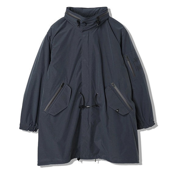 M-65とM-41を再構築して作ったソルテックス素材のモッズパーカー。複数のポケットがあしらわれ、機能性に優れたデザイン。フードは首元に収納することができるので、シーンに合わせて雰囲気の変化を楽しめます。スリーブに描かれたブランドロゴもアクセントに。寒い季節のアウトドアに重宝したいアイテムです。