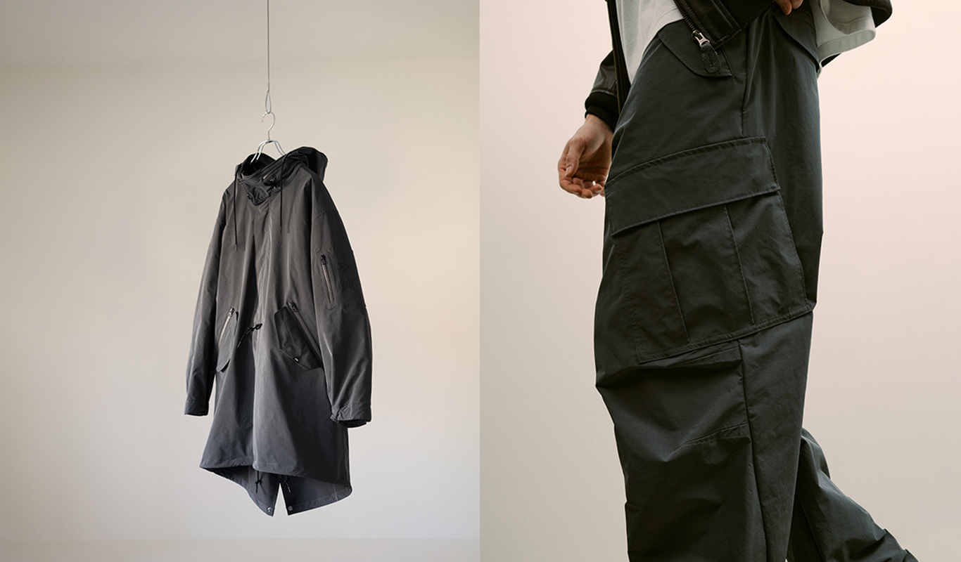 東京の都市にはあらゆるグレーがある。目を凝らせばアスファルト、建物などあらゆるグレーが見えてくる。そんなグレーをトレンディーさやクリエイティブをいれ、アップデートしていくワークウェアやミリタリーウェアを新たなファブリックに落とし込み動きやすく快適に着用できるアイテムを提案。