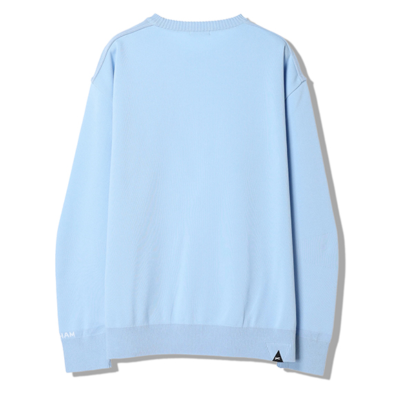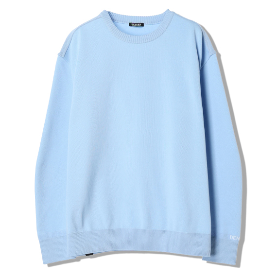 袖口に施されたブランドロゴがさりげないアクセントになるニット。生地端はリブ切り替えになっており、フィット感のある着心地を実現します。爽やかな印象を与えるブルーの色合いも魅力。デニムやスラックスなど、あらゆるボトムスと相性の良いアイテムです。
