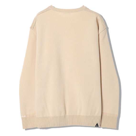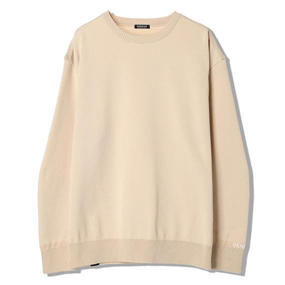 袖口に施されたブランドロゴがさりげないアクセントになるニット。生地端はリブ切り替えになっており、フィット感のある着心地を実現します。丸みのあるクルーネックがやわらかい印象を演出。やさしい色合いのベージュがコーディネートを明るくするアイテムです。