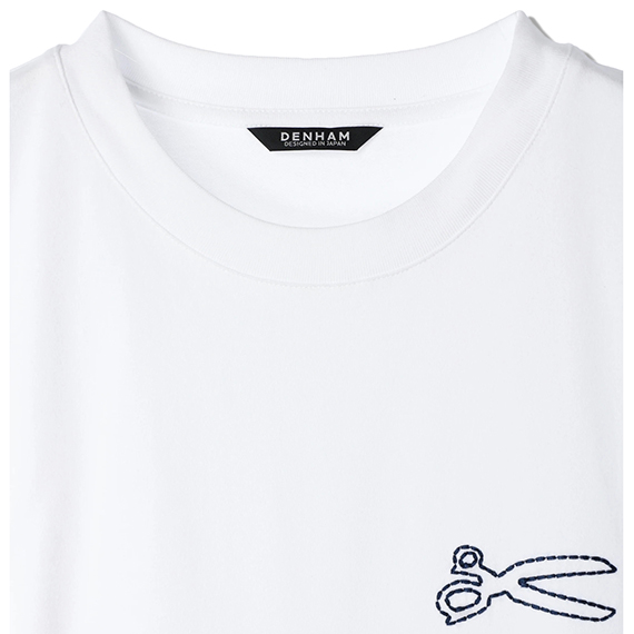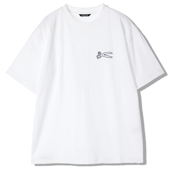 アイコニックなシザーズマークのチェーンステッチが施されたTシャツ。丸みのあるクルーネックになっており、首周りに程よいフィット感を演出します。どんな着こなしにも合わせやすいベーシックなボックスシルエットがポイント。クリーンな印象を与えるホワイトの色合いが魅力的なアイテムです。
