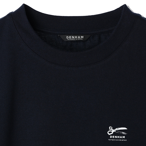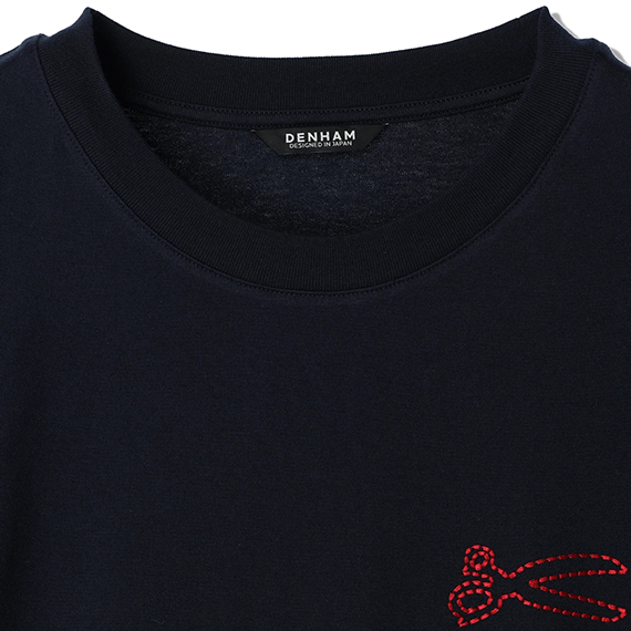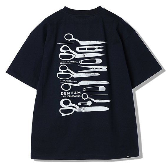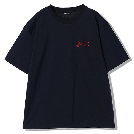 胸元やバックにプリントされたアイコニックなハサミが魅力的なTシャツ。首元はリブ切り替えされたクルーネックになっているので、フィット感のある着心地を実現します。コットン100%を使用した肌触りの良い生地も魅力的。上品な風合いを楽しめるネイビーの色合いで仕立てられた1枚です。