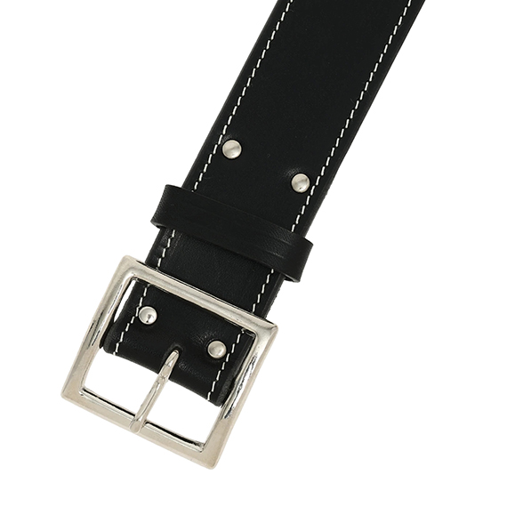 エッジをきかせるスクエアバックルのシンプルなレザーベルト。ブラックレザーにシルバーのメタルパーツを組み合わせてクールな印象に仕上げました。配色ステッチを採用し、スタイリングもこなれ感のある印象に。どんなボトムスにも合わせやすい洗練された大人のアクセントアイテムです。