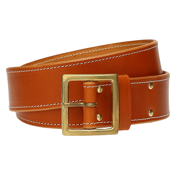 DENIMに合うレザーを厳選して選んだ日本製のBELT。栃木レザー鞣しのオイルドタンニン鞣しレザーで、バックルは真鍮製を使用。仕上げ処理として革の端の磨き仕上げの綺麗さはタンニン鞣しの独特の加工法です。また、タンニン鞣しはクロム鞣しと違い、使い込むほどに味が出てきます。革の風合いと表情が自然的なため、デニムとの相性が抜群です。