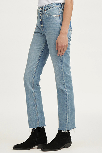 ユーズド感のあるヴィンテージな色合いが魅力のMIKU。バックポケットのステッチングとフェルシームで仕上げた洗練されたバックヨーク。伝統的な大きめのフロントフライの比率を採用。フィット感があり、魅力的なトップブロック。ゆるやかに広がるフレアなシルエットで、脚長な美スタイルを演出してくれるアイテムです。