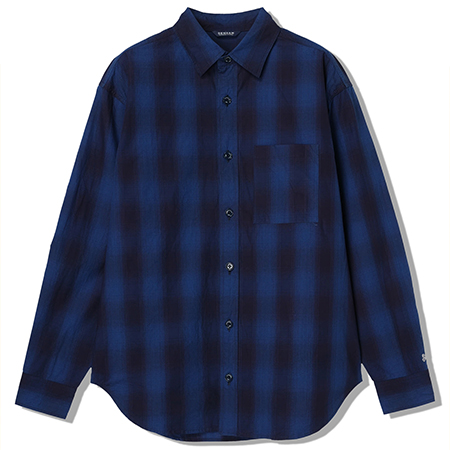 ラフな印象を与えるチェック柄のデザインで仕立てられたシャツ。袖口にはシザーズマークを施しており、さりげないワンポイントになります。深みのあるネイビーの色合いがコーディネートに奥行きをもたらすのも魅力。ボタンを開けて、羽織りのように着用したスタイリングもおすすめです。