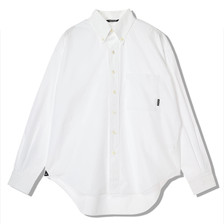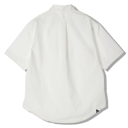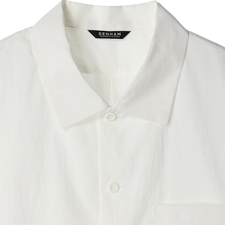 スタンダードな襟付きでシンプルに仕上げたクリーンなシャツ。裾をラウンドテールさせ、縫い代を多めに取っているデザインが特徴です。ポケットにピスネームと内側にループをつけて、めがねやペンをかけられるようにした機能性もポイント。洗濯してから、3時間で乾くポリエステル⽣地を採⽤。さらりと軽やかにスタイリングすることができるアイテムです。