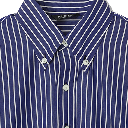 爽やかな風合いを演出するストライプ柄のデザインが魅力的なボタンダウンシャツ。胸ポケットにはブランドロゴ入りのタグをあしらっています。バックのセンターボックスプリーツで立体感をプラス。デイリーユースやオフィスカジュアルにもお使いいただけるアイテムです。