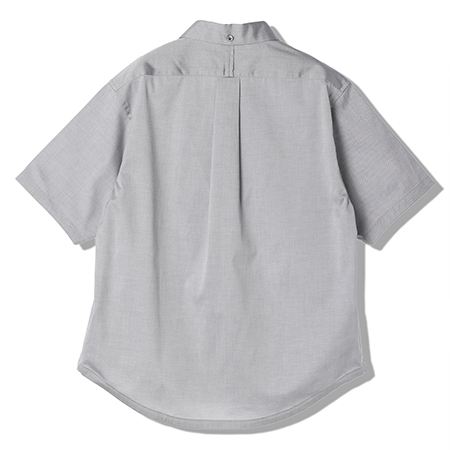 THOMAS MASONの半袖シャツ。通常よりもより細かなオックスフォード生地を使用したこだわりのアイテム。背⾯にループをつけてフックにかけやすくしています。ポケットにピスネーム、サイドにハサミのロゴを配置。スッキリとしたシルエットで、ショートパンツと合わせた爽やかなスタイリングもおすすめです。