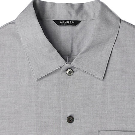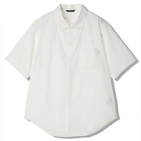 スタンダードな襟付きでシンプルに仕上げたシャツ。裾をラウンドテールさせ、縫い代を多めに取っているデザインが特徴。ポケットにピスネームと内側にループをつけて、めがねやペンをかけられるようにした機能性もポイントです。洗濯してから、3時間で乾くポリエステル⽣地を採⽤。軽い着心地の良さと、合わせやすい落ち着いた色合いが魅力のアイテムです。