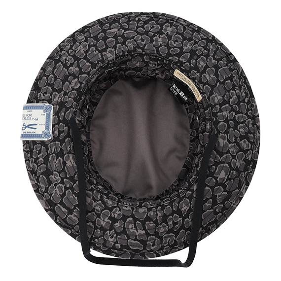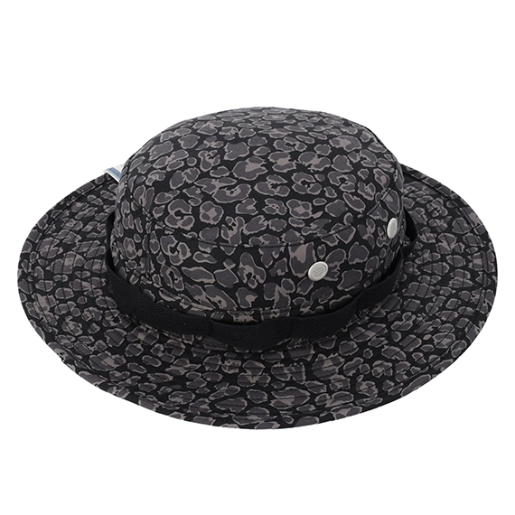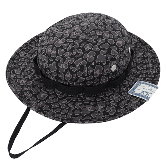 レオパードのプリントを施したジャングルハット。ミリタリーテイストなブランチループのディテールもポイント。無骨さを表現するヴィンテージなバックサテンを採用。経年変化が楽しめる生地の風合いも魅力のひとつです。スタイリングのアクセント使いにも映える存在感のあるアイテムです。