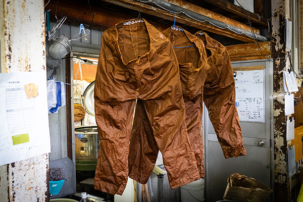 さらに、染めた生地は乾燥する時に色素が移動し、山の部分で濃くなり、谷では薄くなることもあり風合いと色のムラが生まれ、一点一点の個体差が柿渋の深みとなっています。