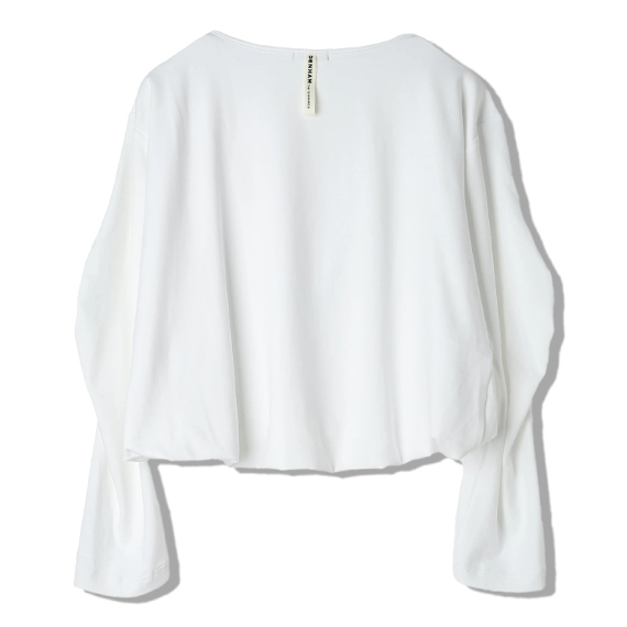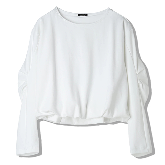 ふんわりとしたバルーンシルエットのロングスリーブトップス。袖にタックを入れ、ボリュームと立体感を出しました。前後差のある裾バルーンシルエットも柔らかな表情を演出。背面の襟ぐりにDENHAMのスレキタグがついているのもポイントです。クリーンなホワイトで個性的なデザインでもスタイリングに取り入れやすいアイテム。
