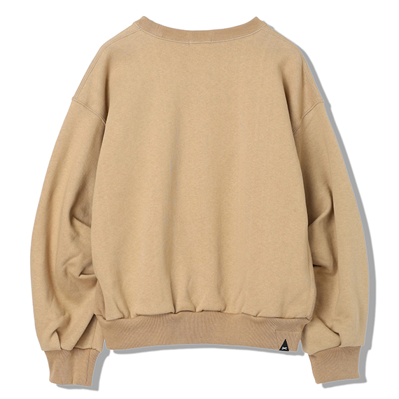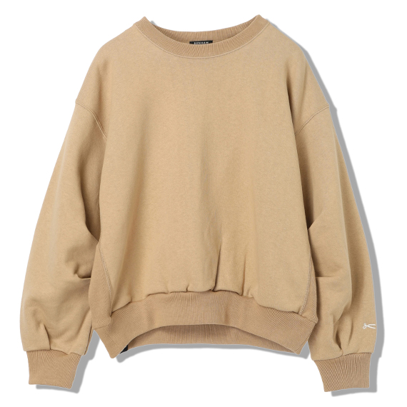 ゆったりとした丸みのあるシルエットが魅力的なスウェット。暖かい裏起毛で仕立てられているので、肌触りの良い着心地を実現します。袖口に施されたシザーズマークがさりげないワンポイントに。ベージュの色合いでコーディネートにやさしい印象を与えるアイテムです。