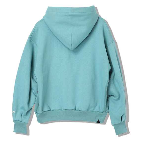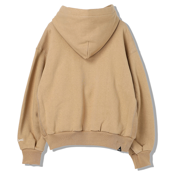 スリーブに寄せられたタックが丸みのあるシルエットを演出するフーディー。袖口にはシザーズマーク刺しゅうを施し、さりげないワンポイントになります。便利なカンガルーポケット付き。デイリーユースはもちろん、アウトドアシーンにも重宝したいアイテムです。